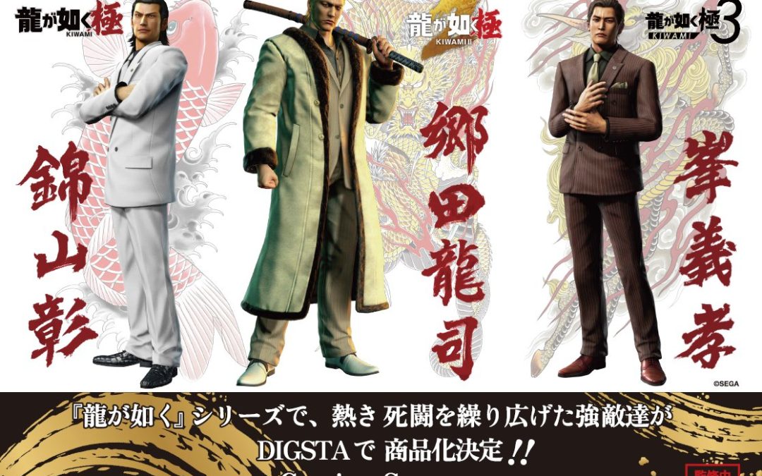 Announced just moments ago the line up for the next Like a Dragon figures from DIGSTA are confirmed to be Akira Nishikiyama, Ryuji Goda, and Yoshitake Mine. No word yet on a release date but as soon as we know we’ll post more. It’s unclear if we’ll get both the regular and shirtless battle versions but we’re pretty positive we’ll be getting versions of both.