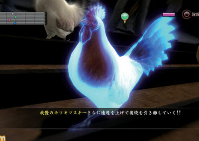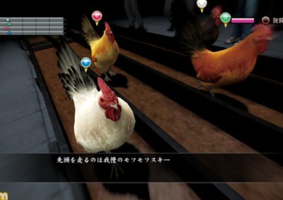 Chicken races (which look VERY similar to the turtle races in Yakuza: Kenzan) have you meeting in back alleys to engage in illegal chicken races!