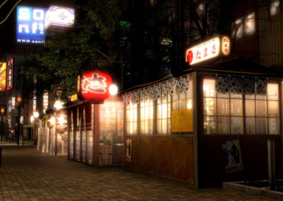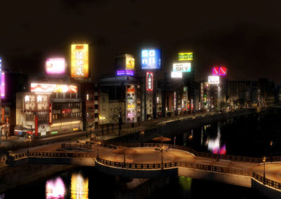 The location shown in the screenshots is from the game’s Fukuoka setting. As the story goes, Kiryu is chilling with Haruka down in Okinawa at the Asagao foster home. One day, a girl visits him. It’s unclear what this meeting was about, but Kiryu ends up leaving Asagao and heading up to Fukuoka. One thing leads to another, and by the game’s December 2012 starting time, Kiryu is driving a cab around the streets of Kyushu’s largest neon town, Fukuoka’s Nagasugai district. (Like Tokyo’s Kamurocho district, Fukuoka is real but Nagasugai is fictional).